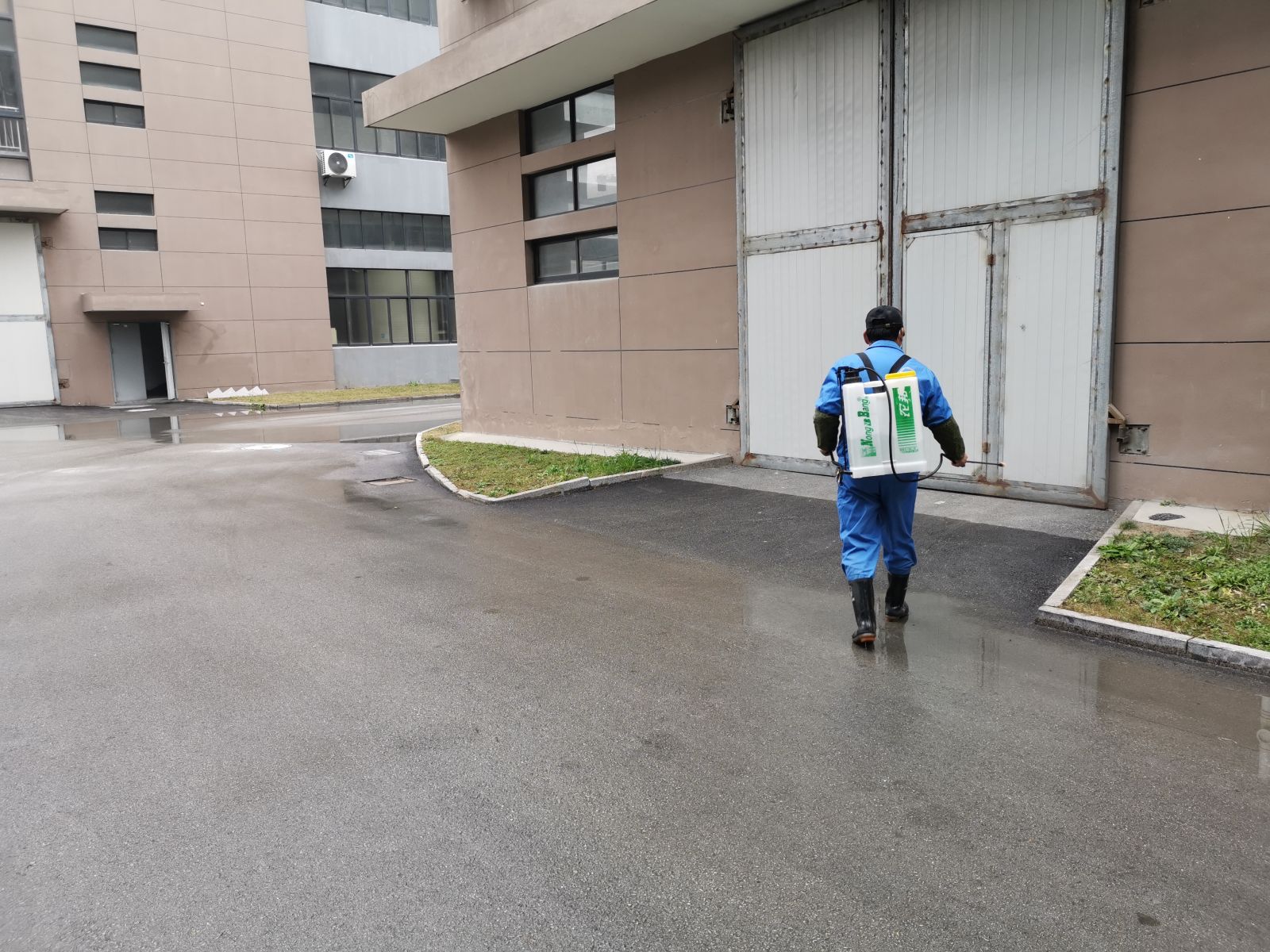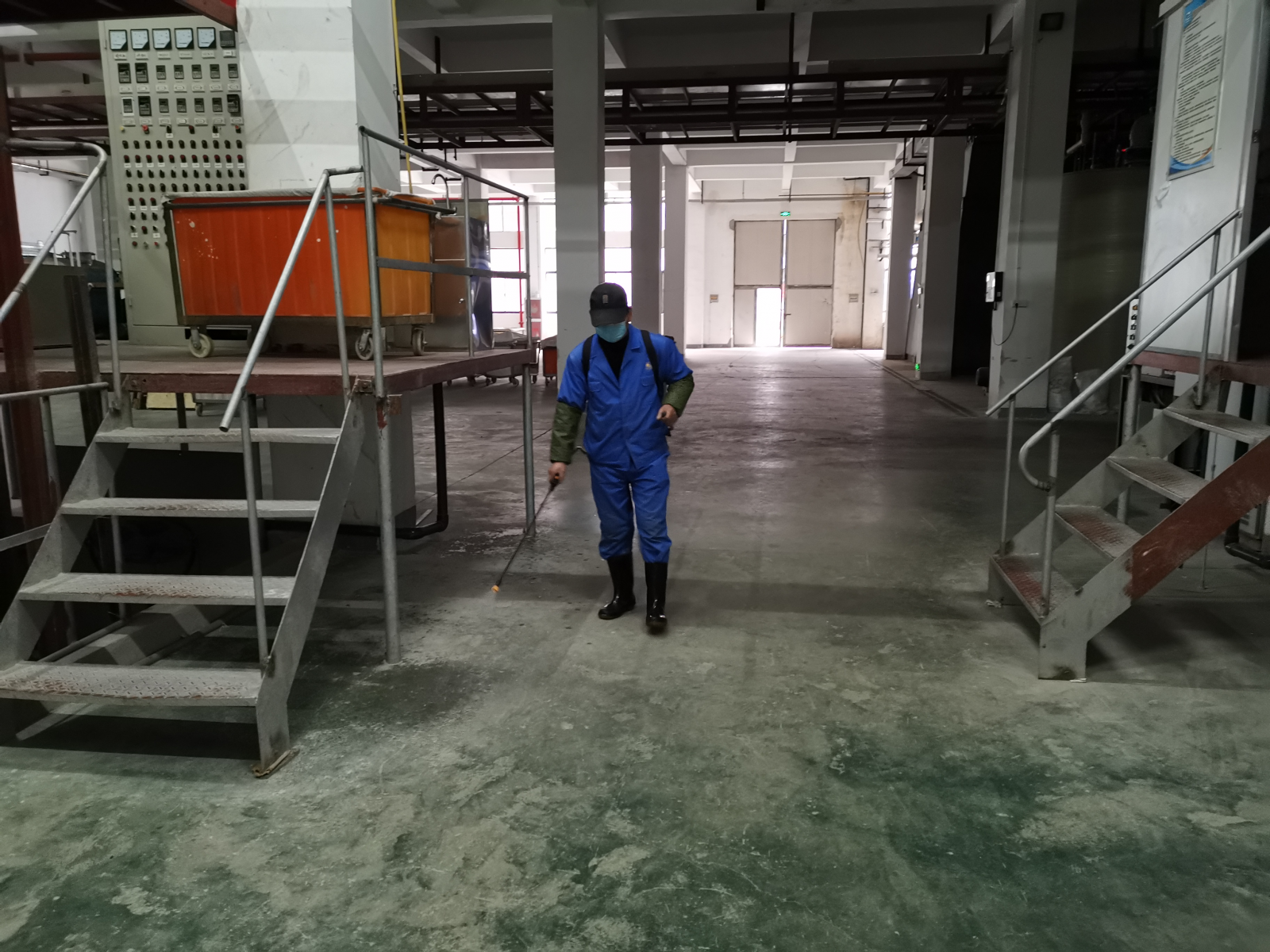 每天定時定點進行廠區(qū)消毒作業(yè)