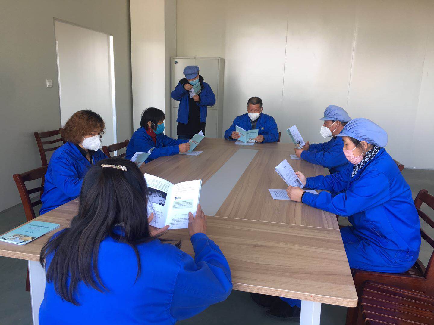 員工學習《新冠肺炎預防手冊》和公司2020年員工培訓資料